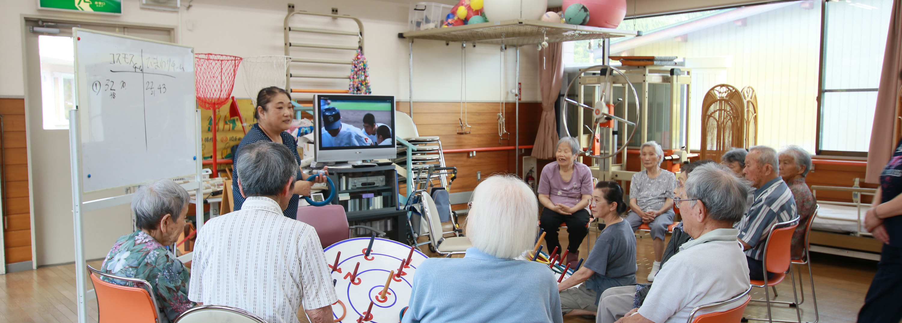 通所により、入浴・食事・機能訓練などの支援を行うと共に社会交流を努めます。